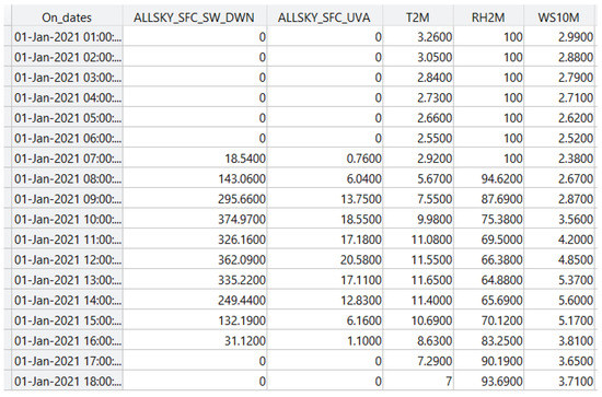 The initial environmental dataset is arranged in chronological order on an hourly basis within a table and can be expressed analytically as