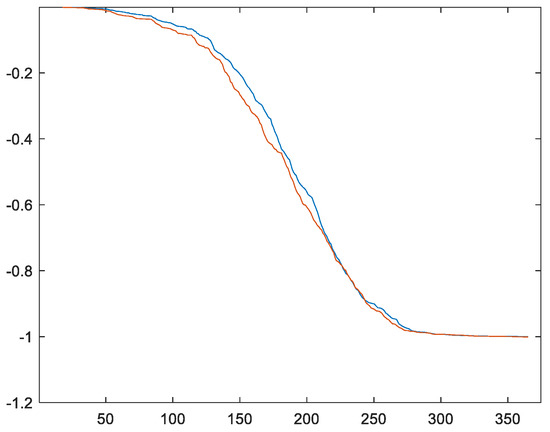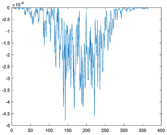 Figure 10 represent respectively the daily effect of environment on degradation trend and cumulative effect for an offshore site. The obtained values at the end of the year, equal to −0.03 and −0.0095 (−3% and −0.95%), respectively, in the onshore and offshore cases, are not reliable for many reasons:
