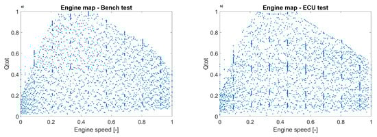 Engine operating points in stationary conditions through (a) test bench and (b) ECU acquisition systems.