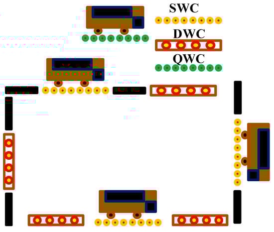 Three alternative charging modes—static, quasi-dynamic, and dynamic charging—could be used to automate the charging of automobiles using wireless charging [14]. Static charging has several advantages, including the possibility of being deployed in convenient places like parking lots or garages and eliminating the electric shock posed by cables [15]. The QWC system enables charging for EVs when they are temporarily stationary, such as at traffic lights, extending their range and reducing the requirement for energy storage [16]. The DWC system would continually charge the EV through authorized on-road charging lanes, increasing driving range and shrinking battery size [17,18]. Utilizing wireless charging systems with an efficiency range of around 88.5%, WPT was completed by level 2 (230-V ac) powering at a rate of 7.2 kW.