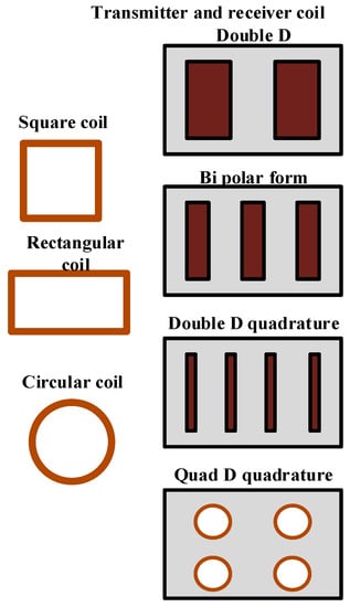 - Shi, X.; Qi, C.; Qu, M.; Ye, S.; Wang, G.; Sun, L.; Yu, Z. Effects of coil shapes on wireless power transfer via magnetic resonance coupling. J. Electromagn. Waves Appl. 2014, 28, 1316–1324. [Google Scholar] [CrossRef]