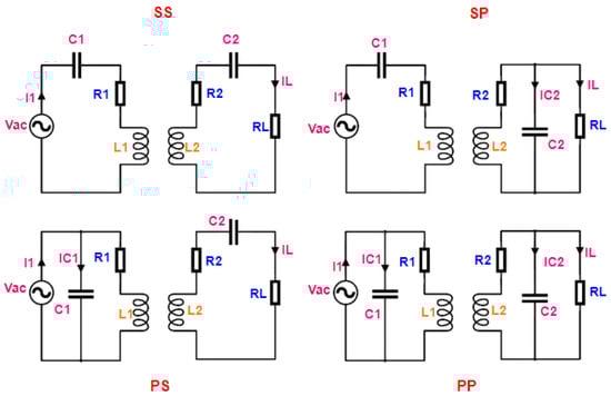 - Joy, E.R.; Kushwaha, B.K.; Rituraj, G.; Kumar, P. Analysis and comparison of four compensation topologies of contactless power transfer system. In Proceedings of the 2015 4th International Conference on Electric Power and Energy Conversion Systems (EPECS), Sharjah, United Arab Emirates, 24–26 November 2015. [Google Scholar] [CrossRef]