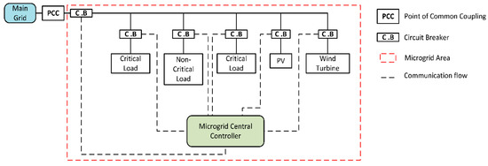 The loads in a microgrid can be classified into critical and non-critical loads. Critical loads such as medical equipment and the fire department need high power quality and reliability, contrary to the non-critical loads such as residences and industry, which require a lower service quality [81]. The controllable loads can be reduced or shed during the critical time and for which the demand can be scheduled among a set of pre-defined operations at different time points. The MGCC sends the signal to controllable loads units for achieving a step change in electricity consumption, which can be based on a pricing signal, activities, and disturbance in the power supply [82]. Figure 4 illustrates the block diagram of critical and non-critical loads connected with MGCC.