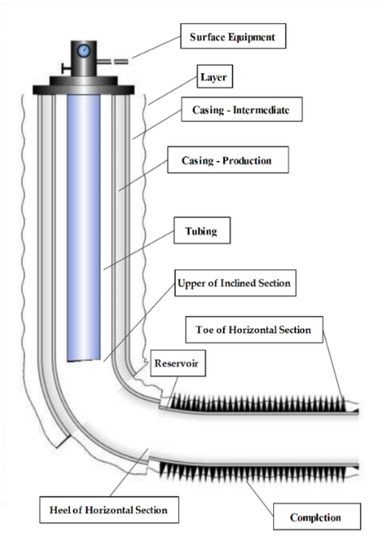 Figure 1 depicts the typical layout of horizontal gas wells, which can be seen in the investigation of the Qinghai, Xinjiang, Changqing, and Sichuan gas fields, among others. The upper section of the inclined segment is reached by the conventional well’s regular tubing.