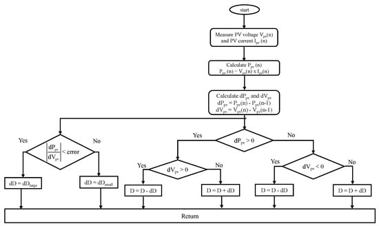 Flowchart of variable-step P&O MPPT algorithm [26].