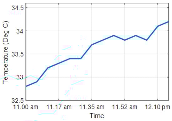 Temperature data samples between 11 a.m. and 12.20 p.m.