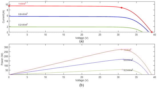 (a) I-V and (b) P-V characteristics of a solar module under varying solar radiation [,].
