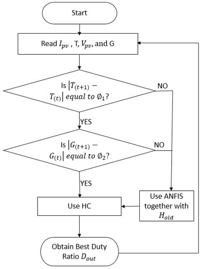Flow diagram of the HC-ANFIS MPPT technique [].