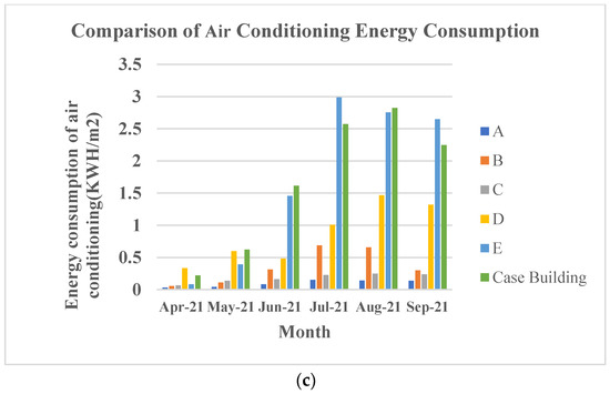 Figure 6c shows the air-conditioning energy consumption per unit area of the office building during the experiment period, and it is found that the energy consumption of the case building ranks among the top for the same type of buildings.