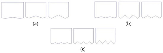 Serrated bowhead cross-section model. (a) Three serrations with different serration heights; (b) Five serrations with different serration heights; (c) Seven serrations with different serration heights.