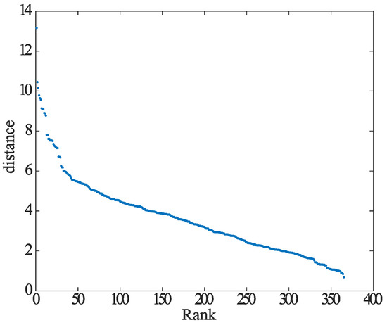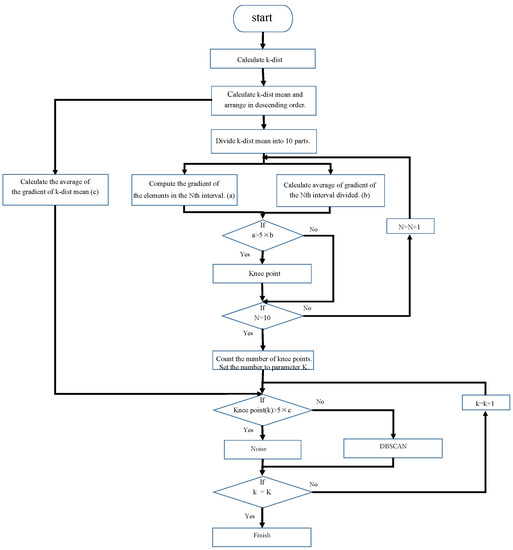 DBSCAN needs to determine the radius of an element and the number of elements MinPts within the radius. The setting of these two parameters determines the clustering accuracy. Therefore, we used an algorithm to automatically determine the parameters of and MinPts using the k-dist plot method introduced in Ref. [27]. The procedure is shown below.