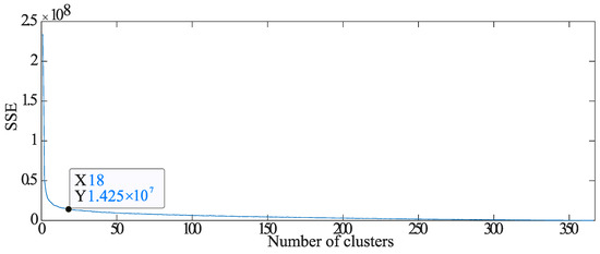 In the k-means method, the number of clusters was determined using the elbow method. The results of the elbow method are shown in Figure 22. The number of clusters was determined to be 18 based on the results in Figure 22.