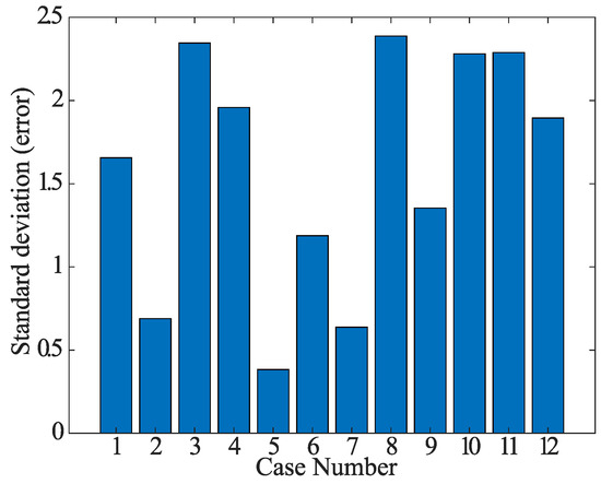The results from case 2 are used to analyze which of the data shown in Table 1 are suitable for load-demand pattern classification. Figure 24 shows the averages by error of the operating costs for the 12 types of data. Figure 25 shows their standard deviations. From Figure 24 and Figure 25, the clustering including four of the data cases (2, 5, 6, and 7) results in the lowest error. These results are related to total load demand and temperature, respectively, and it is appropriate to use these data in classifying load demand patterns. In fact, since load demand is expected to change significantly from season to season, the load demand pattern classification based on temperature and load demand is considered appropriate.