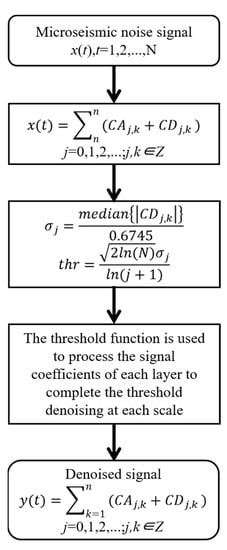 Wavelet threshold denoising is a time-scale noise reduction method for signal analysis; it is a multiresolution analysis technique that can represent the local features of signals in both the time and frequency domains. It is a time–frequency localization analysis method based on a fixed window, and the wavelet shape, time window and frequency window can be changed. The low-frequency part of a signal has a low time resolution and a high frequency resolution, and the high-frequency part has a high time resolution and a low frequency resolution. This method is suitable for analyzing nonstationary signals and extracting the local characteristics of signals such as microseismic signals.