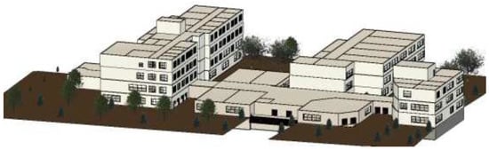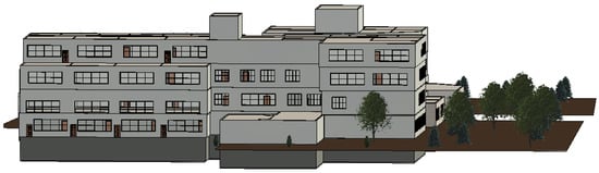 Figure 2 shows a photorealistic 3D rendering of the university building created in Autodesk Revit, while