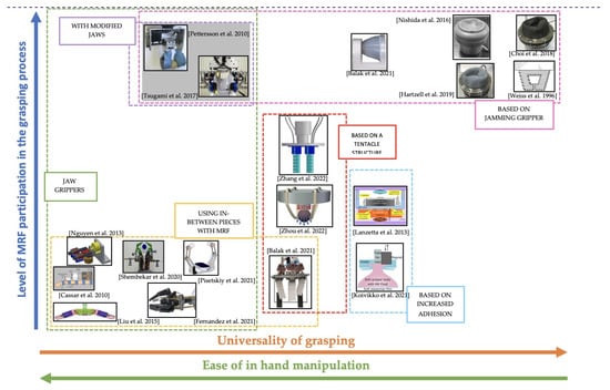 - Cramer, J.; Cramer, M.; Demeester, E.; Kellens, K. Exploring the potential of magnetorheology in robotic grippers. Procedia CIRP 2018, 76, 127–132. [Google Scholar] [CrossRef]