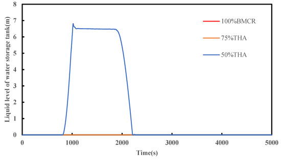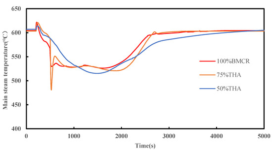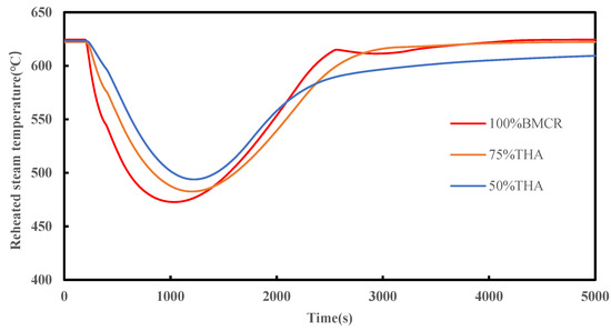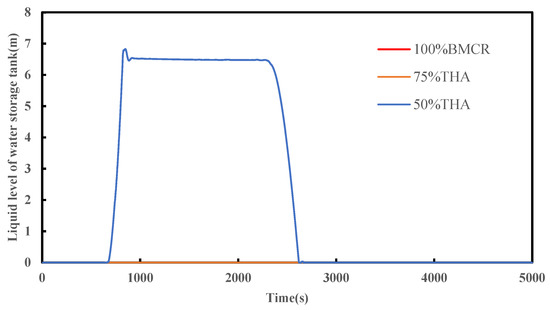 Figure 14 show the responses of the main steam temperature, heated steam temperature, bed temperature, and liquid level of water storage tank when the boiler triggers BT at 100% BMCR, 75% THA, and 50% THA, respectively.