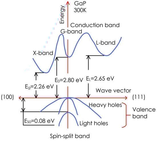 - Spitzer, W.G.; Mead, C.A. Conduction Band Minima of Ga(As_(1−x)P_x). Phys. Rev. 1964, 133, A872–A875. [Google Scholar] [CrossRef]