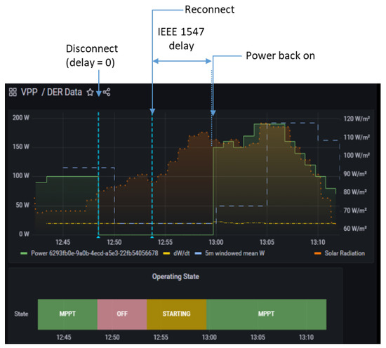 Table 1). The inverter’s response to disconnect is immediate. The response to reconnect is also immediate, but the inverter does not resume producing power until default IEEE 1547-2018 Enter Service Criteria—Delay Before Export of 5 min.