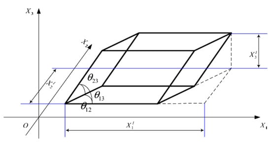 In the n-dimensional parallelepiped model, the initial space rectangular coordinate system is recorded as . The relevant angle is converted into the angle θij between the axes of the affine coordinate system. The corresponding affine coordinate system is established as . The affine coordinate system and the cartesian coordinate system have the following relation: