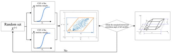The construction of the uncertainty domain requires the marginal interval of all uncertainty parameters and the correlation of any two uncertainty parameters. Next, a method is presented to build a multi-dimensional parallelepiped model based on simulation samples (Figure 5). The specific steps are elucidated as follows []: