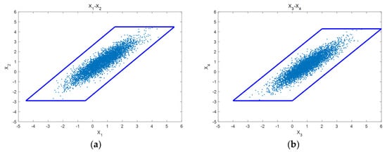 The multi-dimensional parallelepiped model is capable of considering independent and correlated uncertain variables under a unified framework simultaneously while addressing the multi-source uncertainty problem with the coexistence of two types of variables. The uncertainty domain Ω can be constructed only by knowing the variation range of the parameters, i.e., the interval and the correlation between any two parameters. Geometrically, the constructed uncertainty domain is a multi-dimensional parallelepiped and convex set. The following is an example of constructing a convex model in a multi-dimensional space []:
