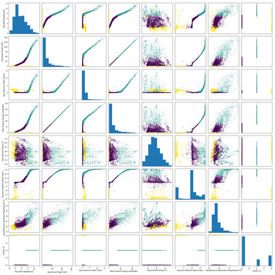 After data pre-processing, visualization of the data according to its correlation with all filtered parameters can be observed in Figure 5. Once the visualization of the data is acquired, the condition changes in the DFIG parameters summarized in Table 1 can be easily determined.
