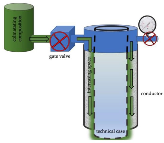 - Colmatation (clogging) involves the introduction of fine particles of solution or other materials into pores, channels, and cracks in the intercasing space, which helps to reduce or completely stop the gas or fluid flows by reducing the filtration properties of the cement. The success of the operation to seal the intercasing space depends on the development of the colmatating solution.