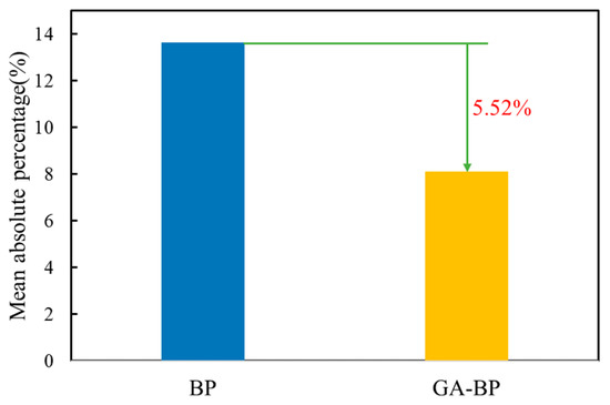 Comparison of the mean absolute percentage with an optimized neural network algorithm and a BP algorithm.