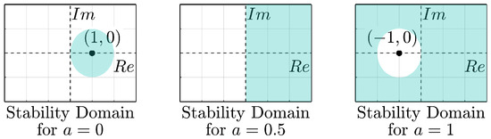Hara et al. [9] also show, from developing Condition 2, that the Nyquist contour of must be contained in an area of the complex plane known as the stability domain of the repetitive control system. These stability domains depend on parameter a, which may be different for each application. As parameter a increases, the stability domain is enlarged, as presented in Figure 2.