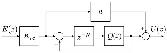 In order to do so, a block is usually added in series with the delay of the repetitive controller, in the periodic signal generator. Figure 5 shows a discrete-time version of the repetitive controller proposed in [9], with . As presented in [23], when adding the block , the condition used to obtain the stability domain becomes