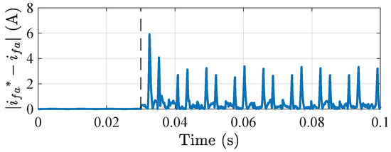 - Since FIR low-pass filters are not ideal, a small reduction in magnitude is expected for frequency components that are below but near the cutoff frequency . This reduction in magnitude means that the internal model principle [20] is not fully met, resulting in the controller not leading to zero steady-state error (Figure 11d). However, it is expected that the higher the , the lower the steady-state error should be.