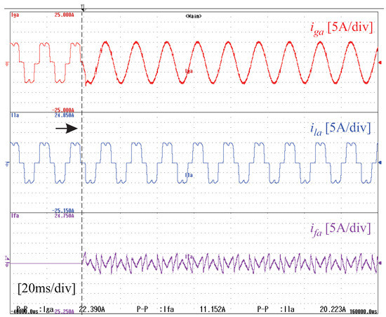 The experimental results are shown in Figure 29, where is the phase-a grid current, is the phase-a load current, and is the phase-a output SAPF current.