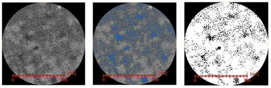 CT scanning technology obtained the characteristic slices of the microscopic pore structure of tight reservoirs at different scales by multi-scale non-destructive scanning imaging of the same sample. Then, the gray image was binarized and segmented by the Avizo software filtering, three-dimensional reconstruction, and image segmentation functions. The pore and particle-matrix were divided, and the binarized segmentation image (Figure 7) was obtained. The structured pore and throat models were extracted for three-dimensional reconstruction to analyze the spatial distribution characteristics and connectivity characteristics of shale pores.