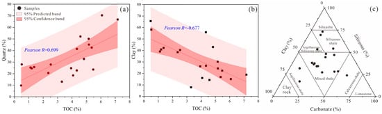 | Sample ID | Well | Lithofacies | Depth (m) | Quartz (%) | Feldspar (%) | Plagioclase (%) | Calcite (%) | Dolomite (%) | Pyrite (%) | Clar (%) | TOC (%) |