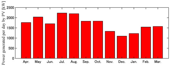 1]. However, if electricity derived from thermal power generation is used to charge EVs, greenhouse gases will be emitted in the process of charging EVs, and the benefits of EV deployment will be reduced. Therefore, we propose the use of renewable energy sources, such as photovoltaic (PV) and wind generation (WG), which do not emit greenhouse gases. We can choose to operate a facility in a microgrid using renewable energy, either grid-connected or independently operated. Both have advantages and disadvantages. Grid-connected operation allows for stable operation, but greenhouse gases are emitted due to the purchase of electricity that is not derived from renewable energy. With independent operation, the system is not connected to the existing grid, so the surrounding grid constraints do not need to be considered. In addition, because the system is assumed to be operated entirely with electricity derived from renewable energy, it can substantially contribute to the reduction in greenhouse gas emissions. However, facility managers must solve the problem of unstable power sources with daily fluctuations in power generation. Several studies have been conducted on the combination of EVs and renewable energy [