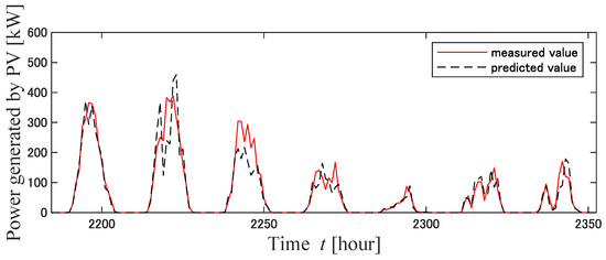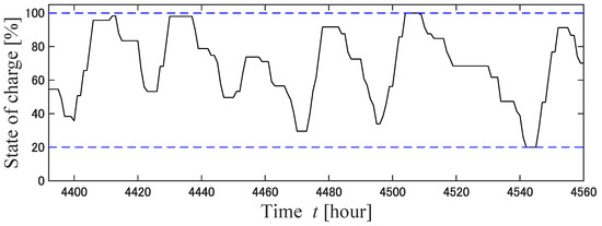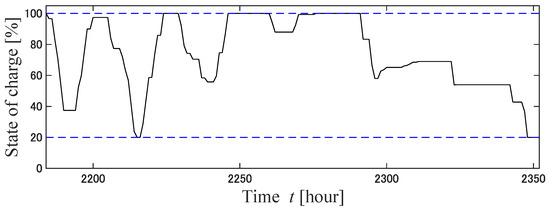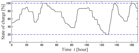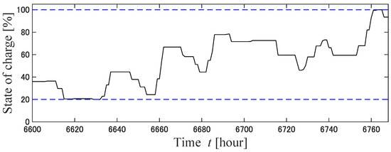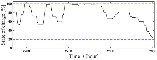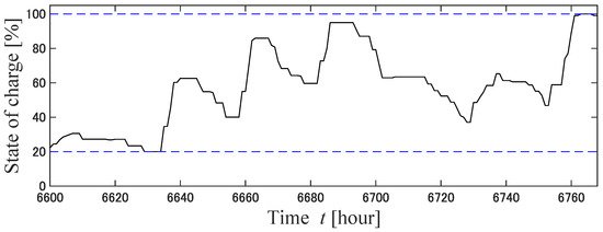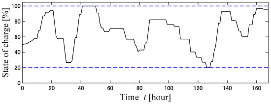 14] have described the operation of a power distribution network using V2G. One of the features of this method is that it allows power sales from EVs to help with charging other EVs and to allow appliances to operate. However, the application of this method requires that there are many EV owners who are willing to sell electric power to the grid. In this study, EVs were assumed to be charged only, and a guarantee was provided regarding the EV charging rate. In principle, EVs are charged with electricity from renewable energy sources, and the guaranteed EV charging rate is relaxed when a shortage of electricity is forecasted. The two innovations of this study are as follows: The first is a simulation of the operation of a P&R-type EV charging station using model predictive control (MPC) and EV charge guarantee rate mitigation adjustment (demand response) for a full year. The second is the mitigation adjustment of the EV charging guarantee rate according to the amount of electricity generated in an independent EV charging parking station. The method of predicting electric power flow using MPC has often been employed [