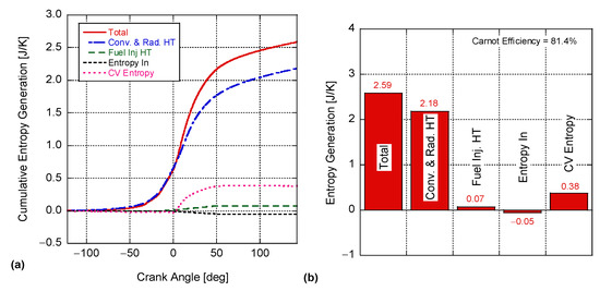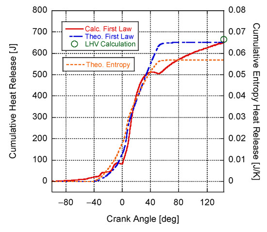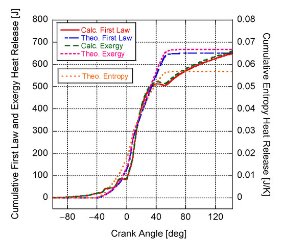 While the majority of heat release models focus on analysis of in-cylinder combustion exclusively from the standpoint of the First Law of Thermodynamics, some models have expanded into utilizing a Second Law of Thermodynamics analysis, and are advantageous when exhaust exergy must be calculated (e.g., for exhaust waste heat recovery systems) [22,23,24]. In addition, while second law modeling might be unnecessary for conventional engine operation, these models can lend additional insights with respect to unconventional combustion regimes (e.g., HCCI, RCCI, dual-fuels) that are less well understood [25,26].