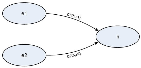 A reliable presentation requires describing formalisms [,]. A formal (Appendix A—descriptions for all formulas), simplified description of the certainty factor is as follows: