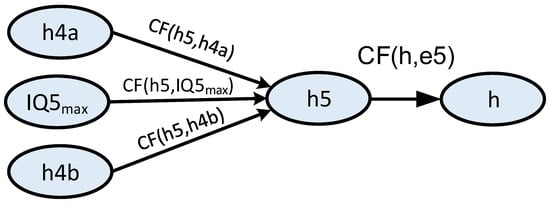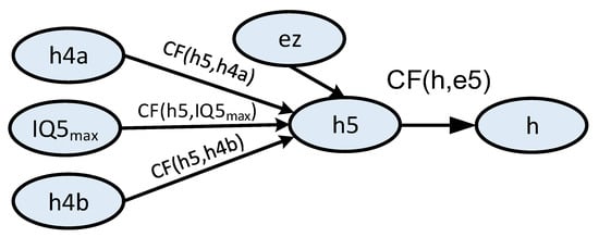 The source literature often contains an incorrect interval (−1.1). However, based on Formula (3), the range of variables used in this model is determined by the interval <−1.1>. 1 indicates the full certainty of the studied hypothesis, and −1 means its negation. 0 indicates the lack of premises related to the studied hypothesis. When analysing Equations (2) and (3), one can notice that the values of interval extremes cannot be taken into account as model functionality would not be satisfied.