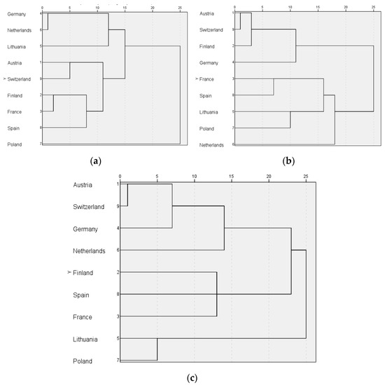A proportion of the number of instruments in each category of those identified in each country were subject to structural and hierarchical cluster analysis. Hierarchical cluster analysis was applied to discover similarities between countries in the structure of instruments used. The method of mean linkage and square of Euclidean distance was applied (however, other methods generated the same clusters). IBM SPSS Statistics 28.0.1.0 software was used.