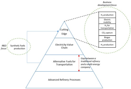 In recent years, the Company’s strategy has focused on increasing the efficiency of its core refinery operations and on extending its activities and operations into new segments in the energy industry, such as electric mobility, new electricity services (for instance, based on the deployment of distributed energy resources, the development of energy communities, energy management and optimization services, etc.) and a wide array of activities related to the nascent green hydrogen value chain and services related to the deployment and adoption of low-carbon technologies and decarbonization solutions [38]. An ultimate goal of the Company, as stated in its strategic plans (and those of its parent company) is to become a multi-energy business [39].
