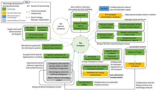 A multi-stakeholder innovation ecosystem evolving around the Company’s sustainable activities. (This characterization of the Company’s surrounding innovation ecosystem is corroborated by data and information published by the Basque Energy Cluster (www.clusterenergia.com/home) (accessed on 6 February 2023), the Basque Energy Agency (www.eve.eus/en) (accessed on 6 February 2023) and in the context of projects such as the Basque Hydrogen Corridor (https://h2v.eu/hydrogen-valleys/basque-hydrogen-corridor-bh2c) (accessed on 6 February 2023) or the Net-Zero Basque Industrial Super Cluster (https://www.spri.eus/en/support/net-zero-basque-industrial-super-cluster/) (accessed on 6 February 2023), to name a few. These represent or involve stakeholders that are external to the studied company and, thus, provide independent views and criteria for the verification of this article’s outcomes.).