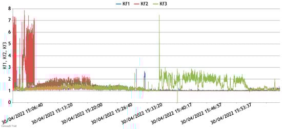 Calculated K-factor Kf1, Kf2, Kf3 graph for phase currents I1, I2, I3 accordingly.