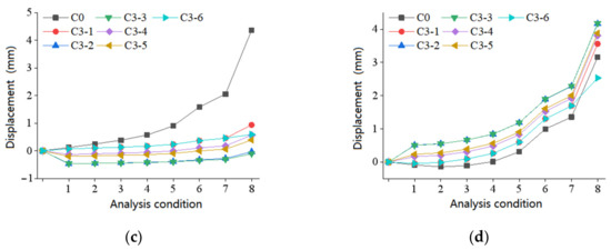 18] according to the degree of deterioration of different transmission-line tower bases. Therefore, when the durability of the structural foundation declines, not only are inclined piles needed, but they also need to be combined with the application of prestressing and concrete reinforcement for control, which can more effectively solve the safety problems caused by the foundation deflection phenomenon.