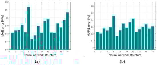 Below in this paper, a review of the energy production forecasting methods is provided, with a particular focus on those that represent an alternative to the neural networks proposed in this article or methods employing neural networks in hybrid configurations. Those solutions have many proponents, but also opponents, who argue that the method uses fuzzy definitions, and hence its results are ambiguous and imprecise. It was long believed that they were not suitable for multi-stage computations (i.e., when the results of the first stage are inputs in the next one) []; however, deep learning networks come in handy here. Many years ago already, George Box, a British statistician dealing with quality control, analysis of time series, and Bayesian inference, noticed and accordingly titled one of the chapters in their paper [], namely, “All models are wrong, but some are useful”. It is emphasized in the article that it is a very difficult task to map reality with a simple model. Linear models are well known and described by mathematicians, but they disappointingly rarely accurately reflect reality. Non-linear problems that are closer to reality are more difficult to define and solve. In those cases, artificial intelligence-based models come in handy, and even though they are unable to provide accurate solutions, owing to the proper definition of the attributes of the identified facilities, they can find relations that a given phenomenon shares and provide a solution to the problem with satisfactory accuracy.