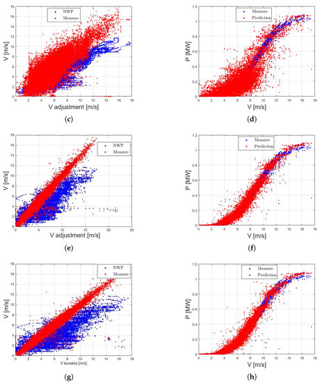 The proposed models for forecasting the electricity production of wind farms are the answer to problems in balancing the energy market from the day-ahead and intra-day perspectives. They make it possible to forecast energy production based on meteorological conditions, and thus allow the accuracy of the forecasting models of energy prices described in [,,,] to increase. The authors [] emphasize the stochastic nature of wind farm production and their negative impact on the predictability of energy prices on the market. In an article [] on the management of the multi-energy microgrids market, they consider five cases where the variability of wind farm production is predicted based on wind speed recording. Similarly, in [], it is the only factor determining the amount of energy produced from wind farms. The analysis of the impact of weather factors carried out in this article, and the proposed method may have a positive impact on improving the credibility of microgrid and energy price management models. Quickly developing IT technologies allow the implementation of forecasting models that are complex in computational terms. They help to minimize forecasting errors to an increasing extent, thus enabling effective optimization of the load distribution and energy outflows, increasing energy supply security, and reducing the cost of its production and transmission. In addition, the adverse impact of the energy sector on the natural environment is reduced. A quick development of energy production volume forecasting can also be observed for wind power plants, which are the focus of the discussion in this paper. This area is being actively developed by research units from across the world. That is demonstrated by numerous papers devoted to this topic published by first-rate publishing houses [,,,,,,,,]. The forecasting models they describe can be broken down into []: