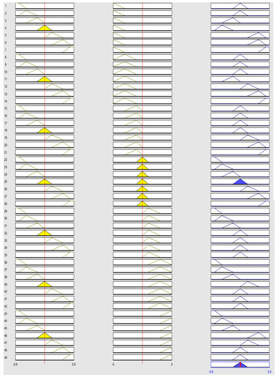 Figure 9 shows the amount of error and changes in power and voltage based on the phase controller obtained by the Mamdani method, which works based on the changes in power and voltage of the output source. A total of 49 rules have been extracted for fuzzy inference.