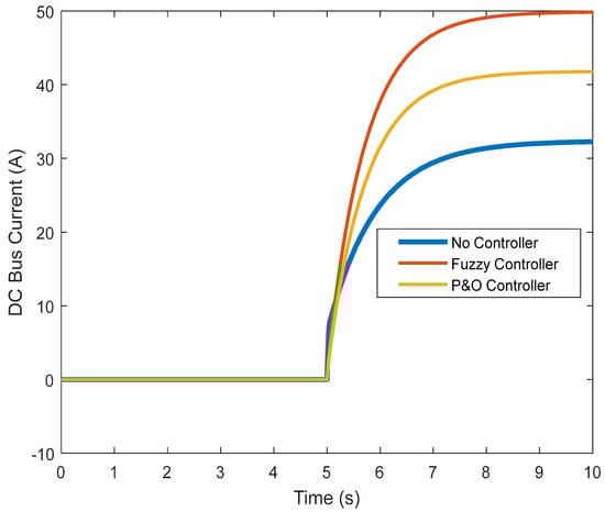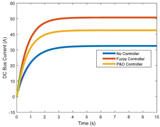 In Figure 13 and Figure 14, the DC voltage and current of the converter are shown. Despite the controller’s actions, the current and voltage of the boost converter increase, applying more power to the load.