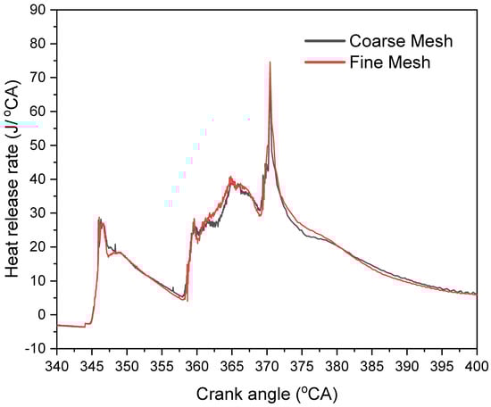 Comparison of HRR using coarse and fine mesh for grid sensitivity analysis.